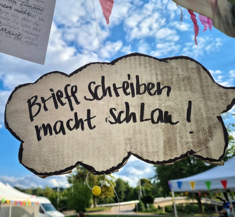 Am Wochenende haben Gabriele und ich im Rahmen von 30 Jahre Wackerfabrik unser Briefcafé wieder eröffnet: ein gemütlicher Ort mit viel Raum für Worte. Besucher*innen konnten wieder bei uns Briefe schreiben – unterstützt von Ideen, Formulierungen und Gestaltungsmaterialien.
